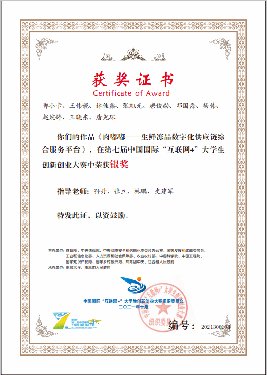 第七届中国国际“互联网+”大学生创新创业大赛国赛银奖