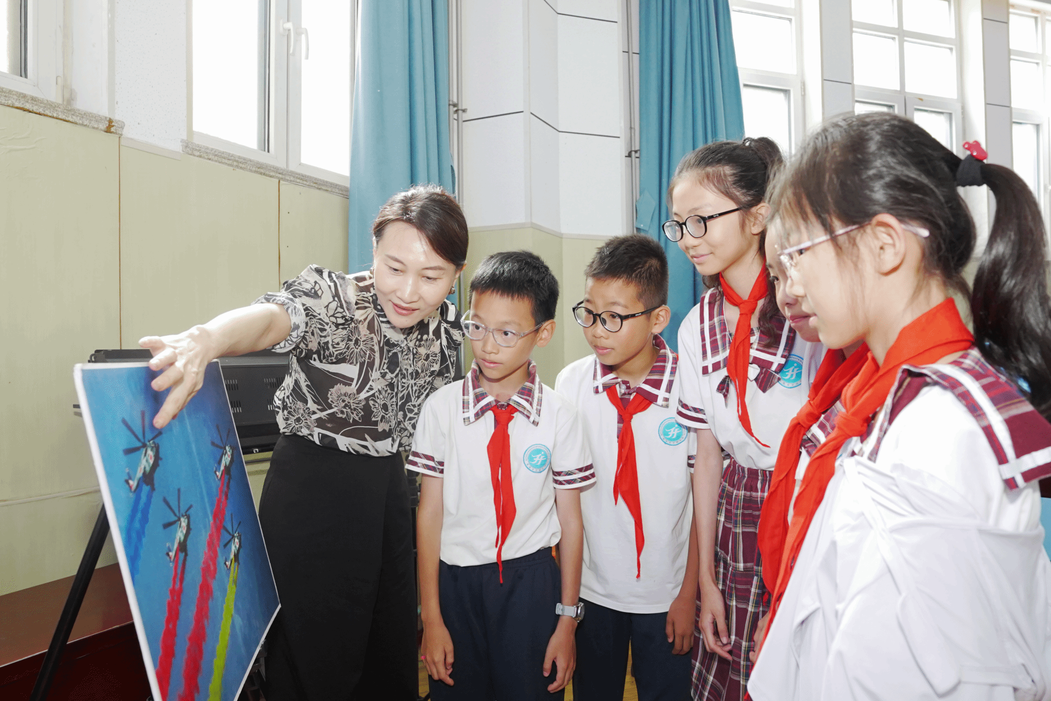活动现场精心布置了“海疆卫士”主题展区:从飒爽英姿的军服到威武雄壮的舰载机模型,从海洋国防图片到海洋生物标本,每一件展品都成为打开海洋国防认知的窗口。同学们通过近距离接触军事装备模型,学习军事知识,亲身体验海军风采,不仅对海军有了全新的认识,也对军事文化产生了浓厚的兴趣。这场跨越时空的国防教育课,让军事文化从展柜走向心间,在少年心中悄然播下爱国强军的种子。