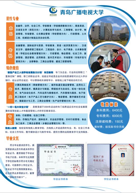 国家开放大学(青岛)2017春招生简章