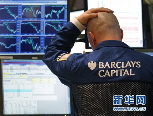 2月23日,一名交易员在美国纽约证券交易所内工作。由于继续受到利比亚形势紧张等因素的压力,23日纽约股市连续第二天下挫,截至收盘,道琼斯指数下跌超过100点,而三大股指连续两天的累计跌幅为近半年以来最高。新华社/路透