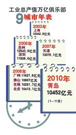昨天上午,全市工业经济超万亿企业发展峰会在香格里拉大饭店举行。会上宣布,截至今年11月底,我市规模以上工业企业产值达到10452亿元,成为全国第九个工业经济过万亿的城市。