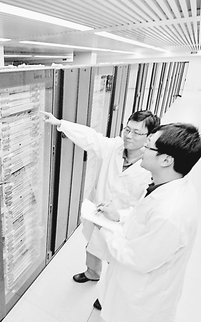 位于天津的国家超级计算中心的“天河一号”计算机机柜。