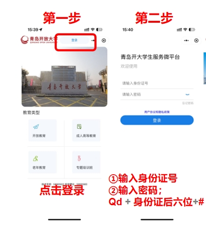 老学员请点击【登录】按钮,登录后进行选课(初始密码:Qd+身份证后6位+#)