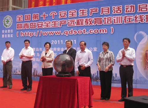 5月31日,在青岛市2011年“安全生产宣传月”启动仪式上,我校承建的“青岛市安全生产远程教育培训在线”由市人大副主任吴淑玲、市政协副主席方漪共同开通。黄同华校长出席开通仪式。