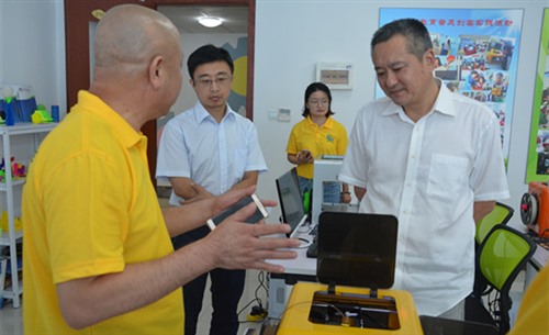 开班仪式结束后赵辉局长一行参观了青岛市中小学生创客实践基地,对基地建设取得的成绩表示肯定,并就后期把基地的先进创客技术与中小学课程进行有效对接提出了建议。