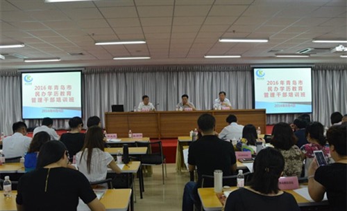 8月4日至5日,2016年全市民办学历教育管理干部培训班在我校金水路校区举办。各区市教育(体)局民办教育分管领导、民办中小学董事长(校长)、分管教学负责人以及驻青民办高校负责人等130余人参加了培训会议。我校校长张锡科出席开班仪式并致欢迎词。青岛市教育局副局长王洪琪,民办终身教育处处长李业庆等领导出席开班仪式。
