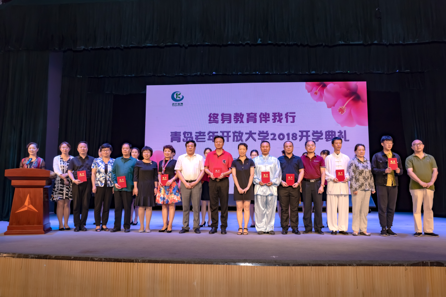 为了让学员们更好地享受“文化养老”“教育养老”的乐趣,提高教学质量,学校聘用了青岛市书法家协会、青岛女书画家协会、青岛作家协会、青岛摄影家协会、青岛音乐家协会等专家来校授课,打造了一支岛城一流教学水平的师资队伍,给予学员最优质的教学指导。在今天的开学典礼上,青岛老年开放大学为授课教师颁发了“青岛市终身教育公益教师”聘书,以感谢老师对青岛市终身教育的辛勤付出与公益奉献。随后,老师们给大家表演了精彩的节目,有吕剧演唱《党的政策带来的好时光》、民乐名段演奏《风华国乐》、快板《党旗铿锵映苍穹》、舞蹈《花舞春风秧歌情》和男生四重唱《永远跟党走》等,赢得了老年朋友们笑声掌声不断。