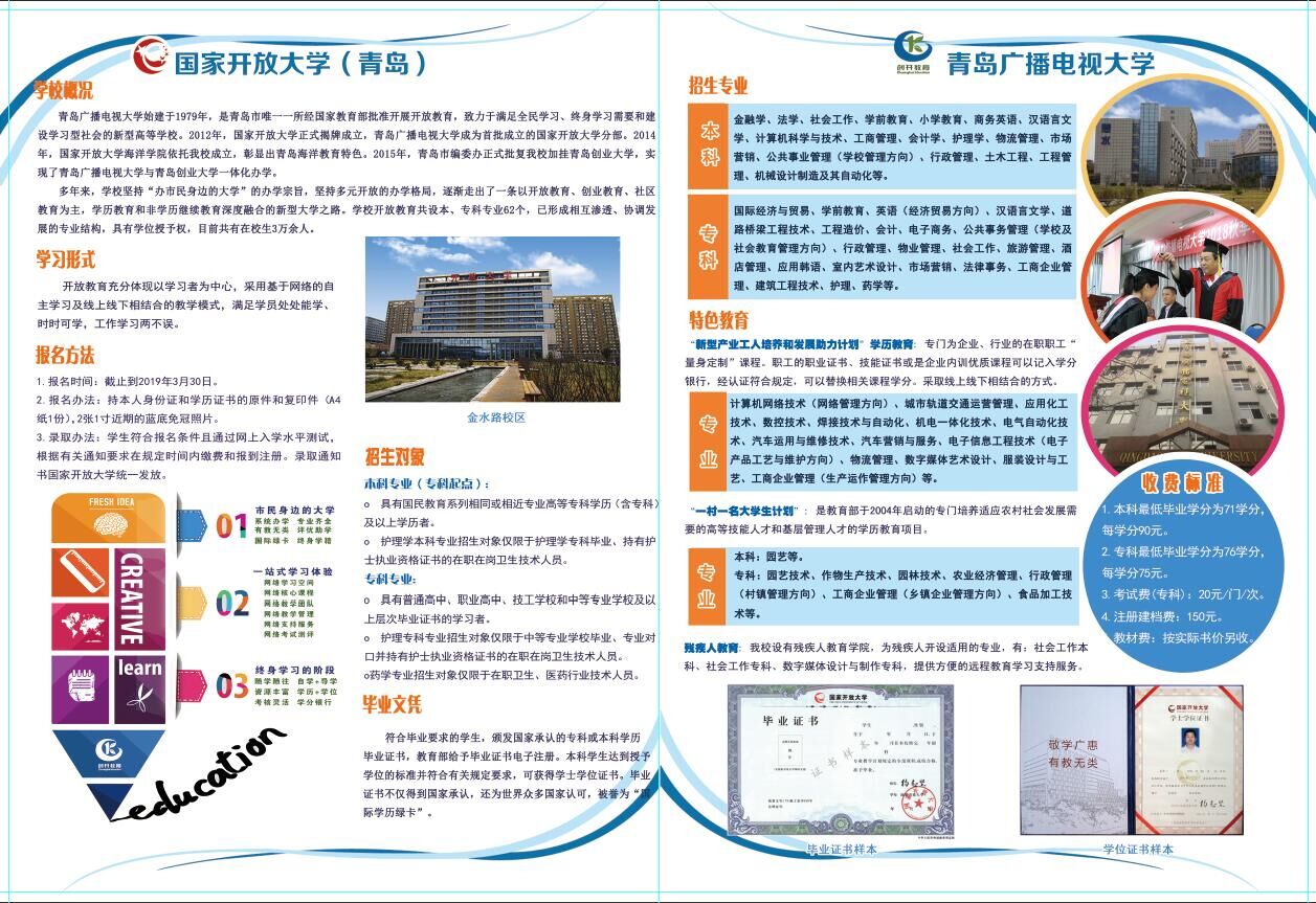 国家开放大学(青岛)2019年春季开放教育招生信息