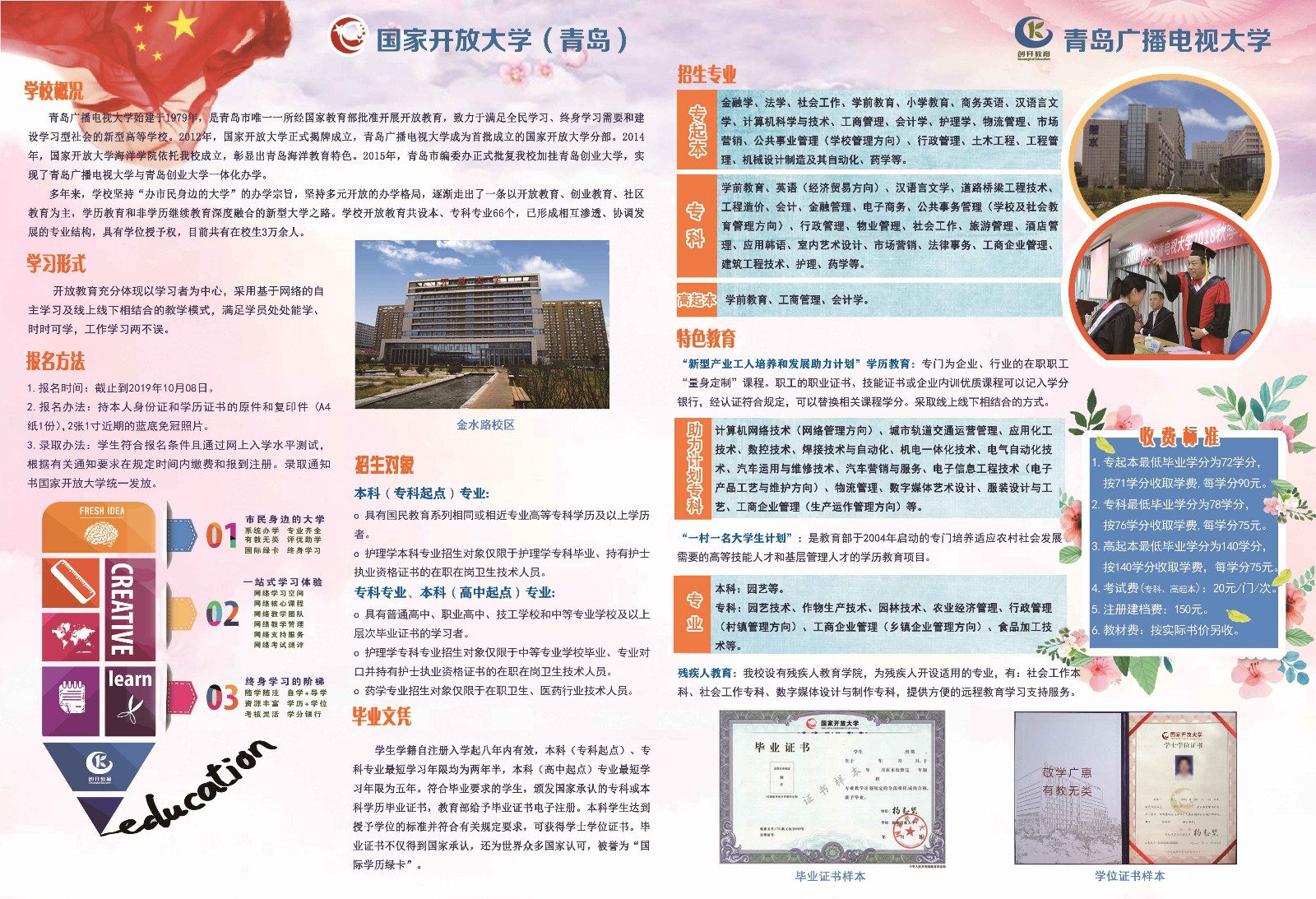 国家开放大学(青岛)2019年秋季开放教育招生信息
