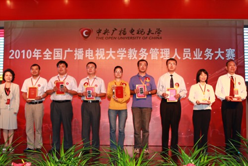 为期5个月的2010年全国电大教务管理人员业务大赛于9月20日在中央电大会议中心落下帷幕。来自全国电大系统的49支代表队参加了这次大赛,经过预赛、附加赛、半决赛,辽宁电大、山东电大、青岛电大、广州电大、重庆电大、甘肃电大等6支代表队进入决赛。我校代表队在决赛中荣获三等奖。大赛还评出五项个人奖,陈磊同志荣获招生“业务精英奖”。