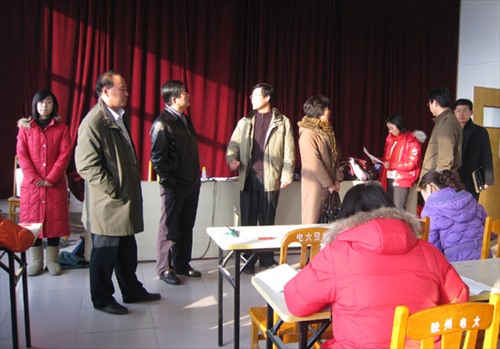 张锡成在听取胶州电大张源毅校长对近四年来农村实用人才高等学历教育和考试情况的汇报后,带领巡视组成员实地巡查了考场,并仔细查看了考生的答题情况。