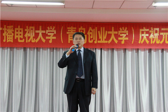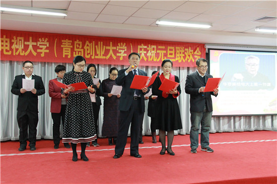 党委书记黄同华致新年贺词。他代表学校党委向广大教职工一年来为学校发展付出的辛勤劳动和突出贡献表示感谢,向全体教职工及家属拜年,鼓励大家在庆祝改革开放40周年和迎接校庆40周年的节点上更加坚定信心、凝心聚力、砥砺前行,为电大发展再创辉煌。