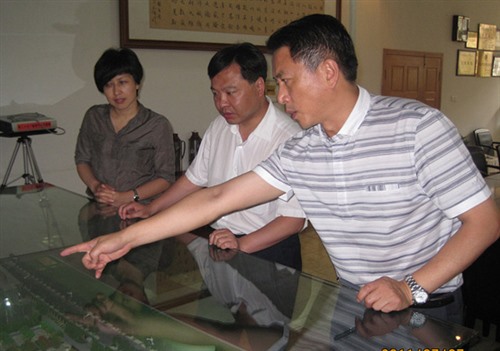 图一:黄同华校长给夏正启副书记介绍我校新校区建设