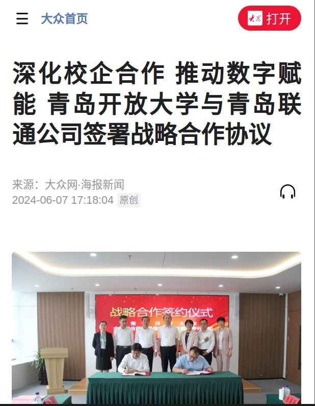 深化校企合作 推动数字赋能 青岛开放大学与青岛联通公司签署战略合作协议