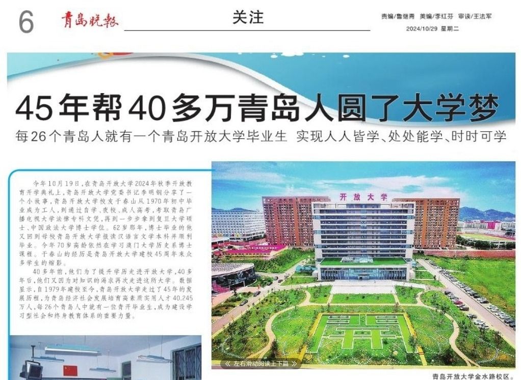 扎根青岛 服务全民终身学习 青岛开放大学办学45年培育高素质实用人才40余万人