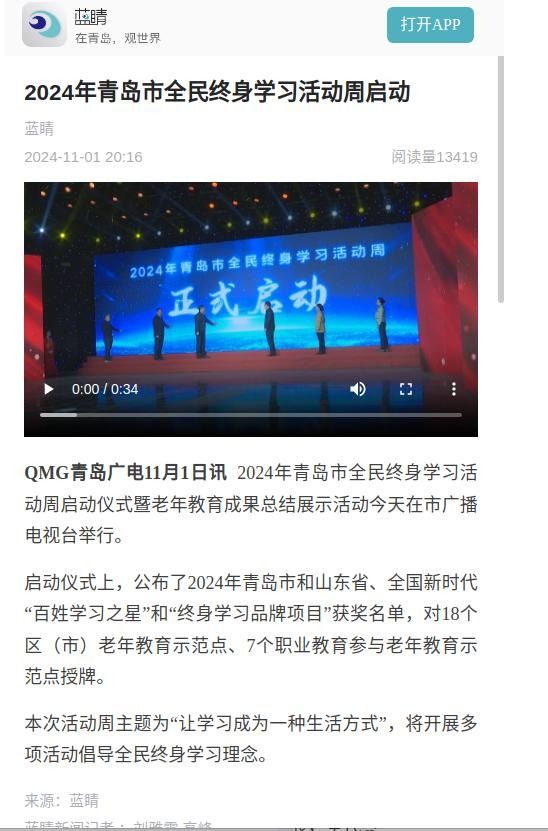 果然视频|让学习成为一种生活方式,青岛启动全民终身学习活动周