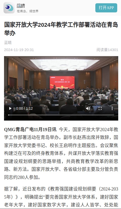 国家开放大学2024年教学工作部署活动在青岛举办
