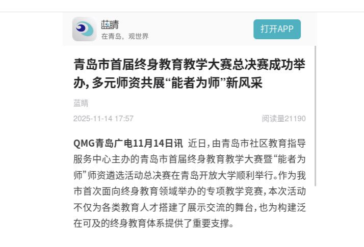 青岛市首届终身教育教学大赛总决赛成功举办,多元师资共展“能者为师”新风采